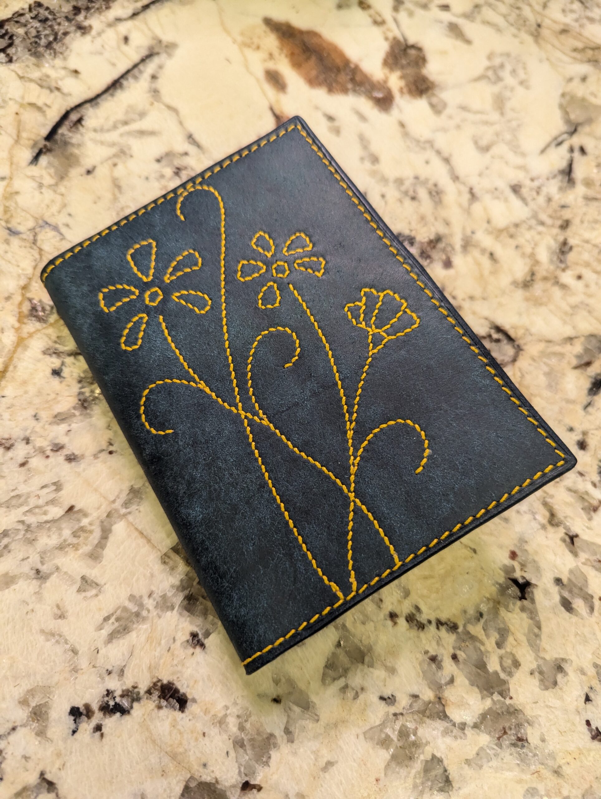 Floral Field Notes WalletPerfect little wallet for your essentials, with a simple floral motif on the cover. Holds a Field Notes booklet. What you’ll need: 1 sqft exterior…